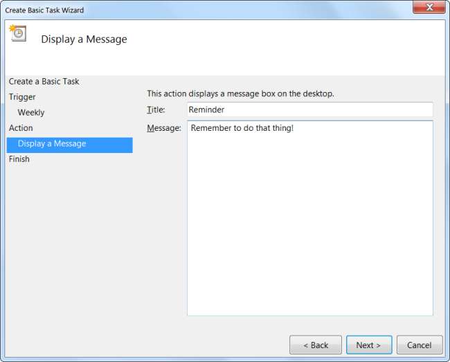 Můžete nechat Windows spustit program, poslat e-mail nebo zobrazit zprávu v reakci na spouštěč, který jste dříve specifikovali.