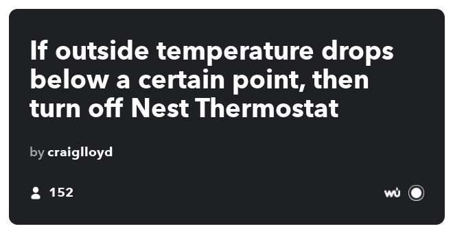 Od této chvíle, kdykoli venkovní počasí klesne pod teplotu, kterou jste uvedli v receptu, nastaví se váš termostat Nest na vyšší nastavení, takže se vypne klimatizace a můžete otevírat okna.