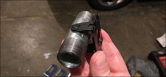 Vezměte si krátkou délku trubky a určete, jak k ní připevníte montážní desku VESA. Bude to z vaší strany vyžadovat trochu kreativity, ale tady je můj způsob. Nejprve jsem potřeboval úplně vyvrtat otvor do potrubí, abych mohl zasunout šroub a připojit můj držák VESA.