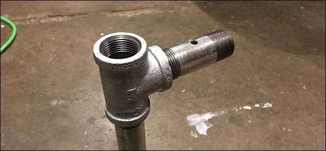 Poté můžete našroubovat loketní kloub. Nakonec jsem musel dostat T-fitink, protože železářství bylo mimo 3/4-palcové loketní klouby, ale stále mi to dává úhel 90 stupňů, který potřebuji.