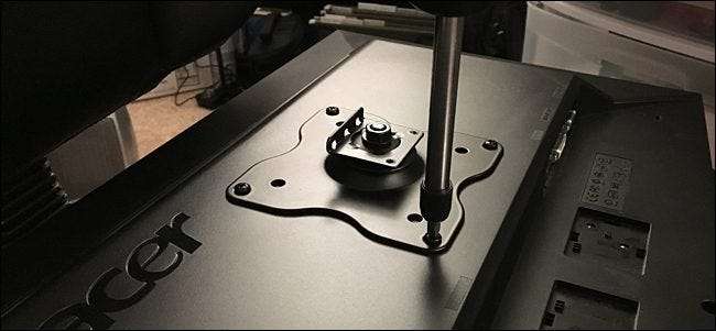 Vezměte montážní desku VESA a přišroubujte ji na zadní stranu monitoru. Také je dobré odstranit stojánek na monitoru, protože ho nepotřebujete.