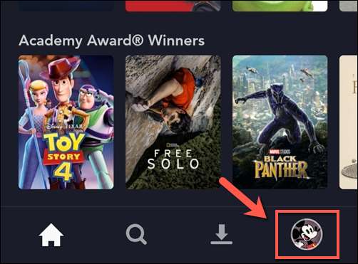 Chcete-li to provést, otevřete aplikaci Disney + na smartphonu nebo tabletu a přihlaste se (pokud jste ještě neučinili), klepněte na ikonu profilu účtu v pravém dolním rohu.