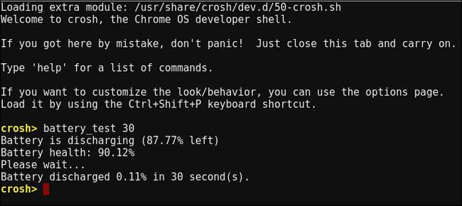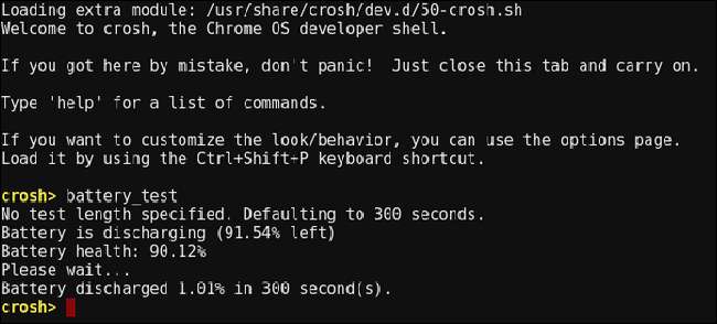 Pokud hledáte jednoduchý způsob, jak získat více informací o baterii, použijte Chrome Shell - nebo CROSH —Je to nejjednodušší způsob, jak to udělat. Chcete-li otevřít okno Crosh, stačí stisknout Ctrl + Alt + T na klávesnici a otevřít okno terminálu.