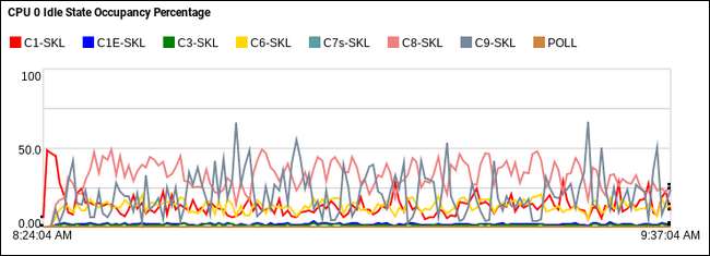 Data nečinnosti přímo neukazují výstup baterie, ale spíše jádra procesoru a to, co každý z nich dělá. Je to dobrý způsob, jak zjistit, co se děje s procesorem. Ale budu k vám upřímný: je tu spousta dat a pravděpodobně více, než byste si měli dát pozor. Přesto může být hezké vidět přehled toho, co dělá každé jádro procesoru.