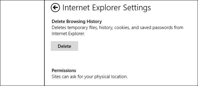 Vymazání mezipaměti prohlížeče ve verzi Metro aplikace Internet Explorer