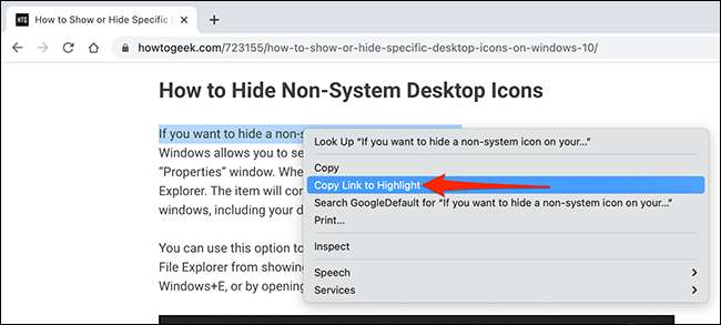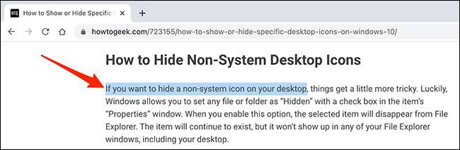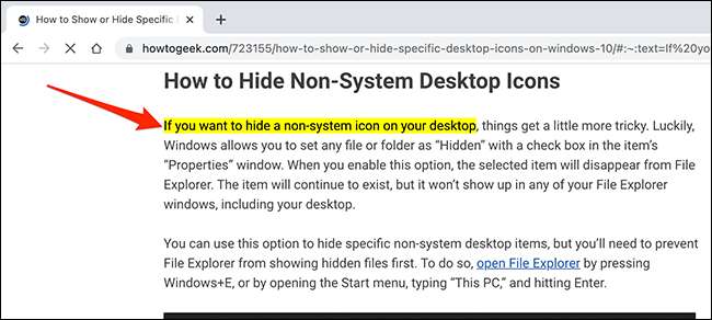 Chrome zkopíruje odkaz pro vybraný text do schránky. Nyní můžete sdílet tento odkaz prostřednictvím sociálních médií, pošlete jej do e-mailu, vložte jej do textového editoru nebo použijte jakoukoliv jinou metodu.
