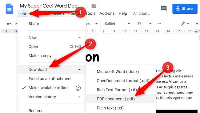 Pokud nemáte Microsoft Word nebo nechcete používat web pro převádění souborů třetích stran, ale potřebujete převést dokument do formátu PDF, můžete k dokončení práce použít bezplatný online textový procesor Google.