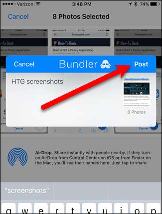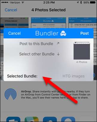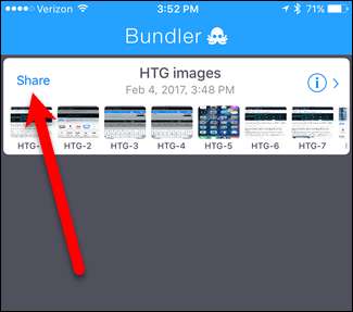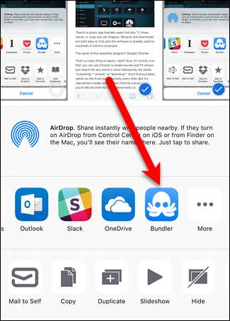 Když jste nainstalovali Bundler, automaticky se přidal do sdíleného listu. Pokud nevidíte ikonu Bundler na listu sdílení, můžete jej přidat . Jakmile se na sdíleném listu zobrazí ikona Bundler, klepněte na ni.