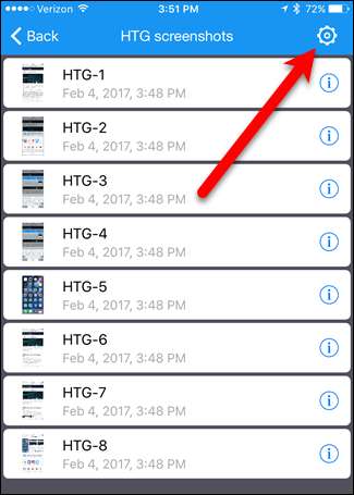 Při přejmenování nebo odstranění svazku je postup obdobný. Řekněme, že chceme balíček přejmenovat na „HTG images“, což znamená, že tento balíček není jen pro snímky obrazovky. Chcete-li balíček přejmenovat, ujistěte se, že je balíček otevřený, a poté klepněte na ikonu ozubeného kola v pravém horním rohu obrazovky.