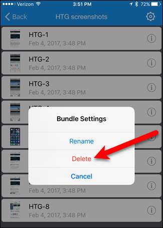 Jakmile přidáte soubory do balíčku, můžete je zobrazit, přejmenovat a odstranit přímo v balíčku. Otevřete Bundler klepnutím na ikonu na domovské obrazovce.