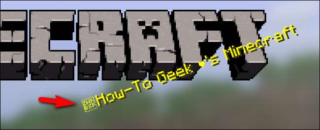 Vlastní úvodní text se nenačte, dokud se nabídka zcela neobnoví, takže musíte buď restartovat Minecraft, nebo jen načíst herní svět a ukončit se pro návrat do hlavní nabídky. Poté se váš vlastní úvodní text zobrazí takto.