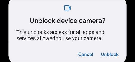 Když používáte aplikaci, která chce přistupovat k jednomu z těchto oprávnění, obdržíte vyskakovací zprávu, která se zeptá, zda chcete odblokovat. Klepněte na tlačítko "Odblokovat", pokud chcete udělit přístup k fotoaparátu nebo mikrofonu.