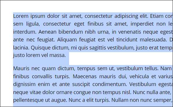 Chcete-li použít dvojité vzdálenosti k textu v aktuálním dokumentu Google Docs, vyberte text. Můžete to udělat kliknutím a přetažením kurzoru přes text. Chcete-li rychle vybrat veškerý text, použijte klávesu "Ctrl + A" ("příkaz + a" na mac) klávesové zkratky.