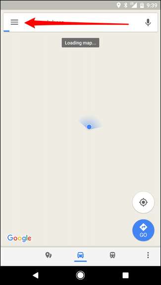 Jakmile budete mít Mapy připravené, spusťte je. Klepněte na tlačítko nabídky v levém horním rohu (nebo jednoduše zasuňte zleva doprava).