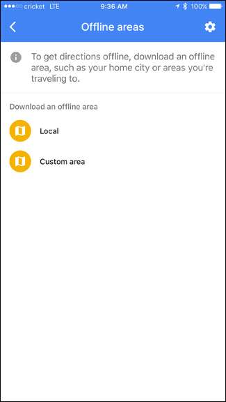 Možnost „Místní“ dělá přesně to, co zní: stáhne vaši místní oblast bez možnosti úpravy oblasti. Použijte toto, pokud hledáte jednoduchou offline mapu toho, kde se aktuálně nacházíte.