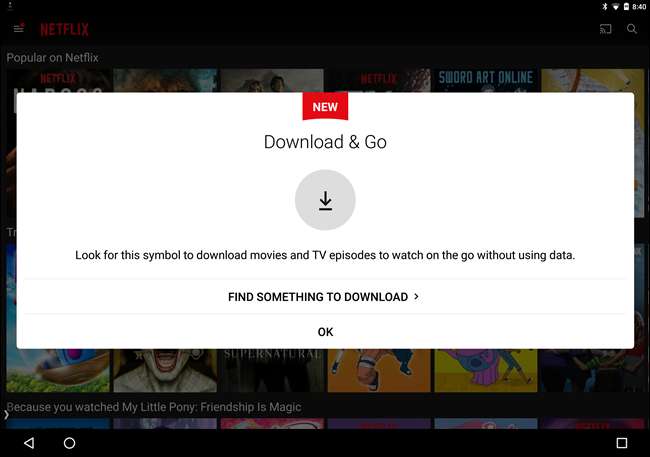 První věcí, kterou musíte udělat, je ujistit se, že máte v příslušném zařízení nejnovější verzi aplikace Netflix (ano, uživatelé Windows, budete potřebovat aplikaci Windows 10 - to na webu aktuálně nefunguje). Jakmile budete mít aplikaci nainstalovanou, bude vás rychle informovat o nové funkci, jakmile ji otevřete. Přední a střední, zlato.