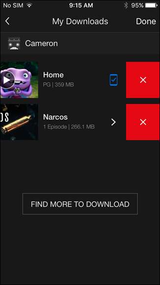 Filmy se začnou přehrávat, jakmile klepnete na položku, kde přehlídky otevřou seznam všeho, co jste stáhli z dané série. Klepnutím na jednu z těchto položek ji přehrajete.