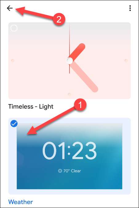 Existuje několik hodin, které si vyberete v různých barvách a stylech. Vyberte ten, který chcete použít, a potom klepněte na šipku zpět.