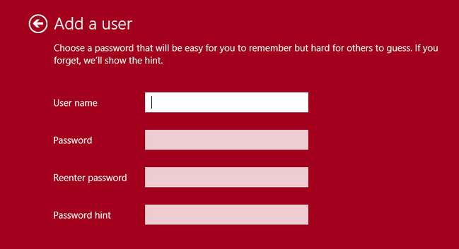 Na další obrazovce uvidíte velmi známý proces, žádost o uživatelské jméno, heslo, kontrolu hesla a nápovědu k heslu: