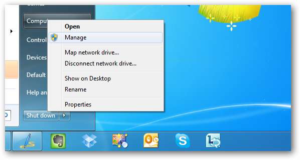 Chcete-li skrýt jednotku, musíte otevřít modul snap-in pro správu disků. Chcete-li to provést, klepněte pravým tlačítkem myši na počítač a vyberte možnost Správa.
