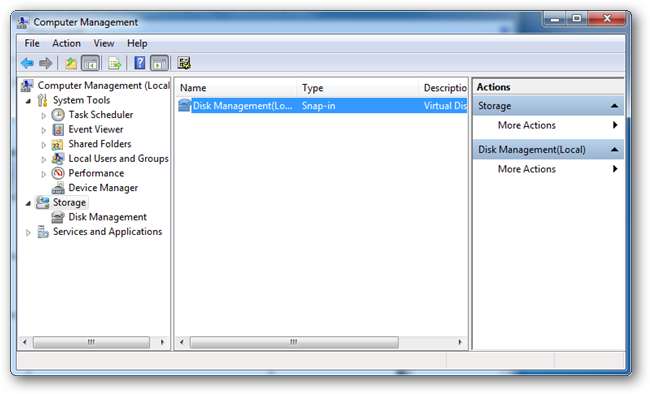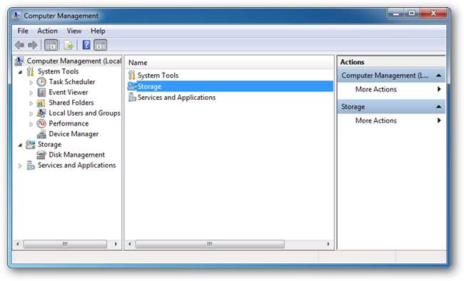 Když se otevře MMC pro správu počítače, dvakrát klikněte na možnost úložiště.