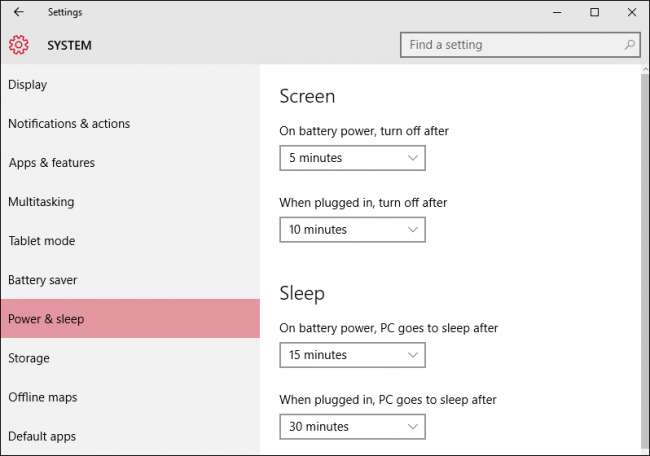 První skupina se týká, když se obrazovka vašeho počítače vypne, když je napájená z baterie nebo připojená k síti, zatímco druhá skupina vám umožňuje určit, kdy spí.