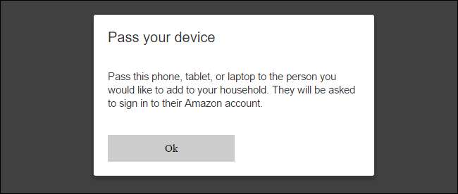 Dále budete vyzváni k předání zařízení nebo počítače druhé osobě, jak je uvedeno výše. Jakmile kliknete na „OK“, budou muset zadat své přihlašovací údaje pro Amazon, aby mohli povolit jejich přidání do vaší Amazon Echo.
