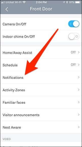 Chcete-li to provést, otevřete nastavení Nest Cam nebo Nest Hello a klepněte na nastavení „Oznámení“.