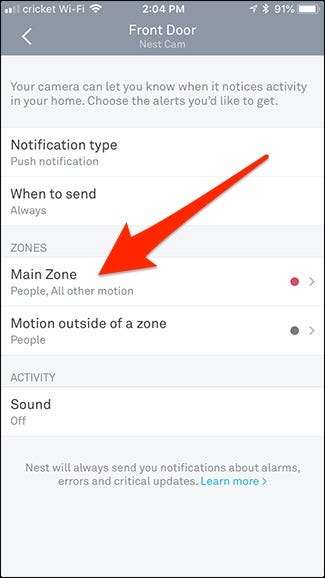Vy umět Udělejte to z aplikace Nest ve vašem telefonu nebo tabletu tak, že přejdete do nastavení fotoaparátu a vyberete možnost „Zóny aktivity“. Je to však trochu těžkopádné dělat to na malé dotykové obrazovce. Takže pokud to dokážete z webového rozhraní, je to ta nejlepší volba.