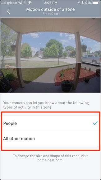 Na této obrazovce můžete jednoduše vybrat, jaké typy upozornění chcete dostávat: Lidé, všechny ostatní pohyby nebo obojí.