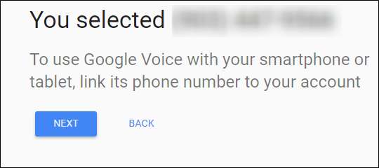 Během procesu počátečního nastavení budete muset propojit stávající číslo se službou Google Voice (nebojte se, pokud se mobilní služby úplně zbavíte, můžete ji později odpojit). Klikněte na Další a zadejte své telefonní číslo. Obdržíte textovou zprávu s šestimístným kódem pro potvrzení.