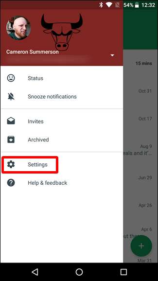 Nejprve spusťte Hangouts. To bude nakonec rozbočovač, který zpracovává všechna vaše nastavení.