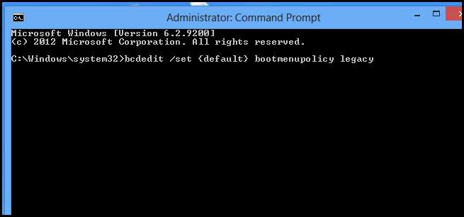 V systému Windows 8 společnost Microsoft aktualizovala zásady standardního spouštěcího menu tak, aby zahrnovalo nové prostředí pro obnovení moderního uživatelského rozhraní. Rovněž snížili dobu, po kterou Windows čeká na přerušení spouštěcí sekvence, téměř na nic. Abychom dostali toto klasické chování F8 zpět, musíme obnovit zásady starší nabídky zavádění. Chcete-li to provést, stiskněte klávesovou kombinaci Win + X a spouštěcí a zvýšený příkazový řádek.