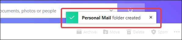 Zobrazí se potvrzovací zpráva a poté se v seznamu zobrazí nová složka.
