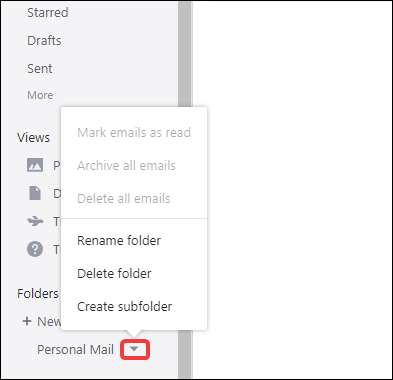 Pokud umístíte ukazatel myši na název složky, zobrazí se vedle názvu tlačítko. Kliknutím na toto tlačítko zobrazíte další možnosti pro složku.