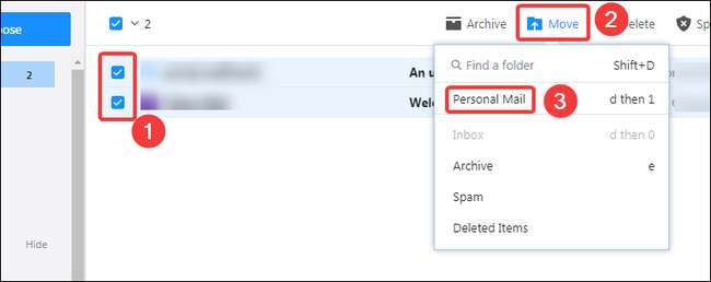 Chcete-li ukládat zprávy do nové složky, máte dvě možnosti. První možností je vybrat zprávy, které chcete přesunout, kliknutím na jejich zaškrtávací políčka, kliknutím na tlačítko Přesunout a výběrem složky, do které chcete zprávy přesunout.
