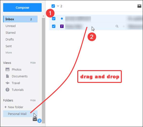 Můžete také přetáhnout všechny vybrané zprávy do složky.