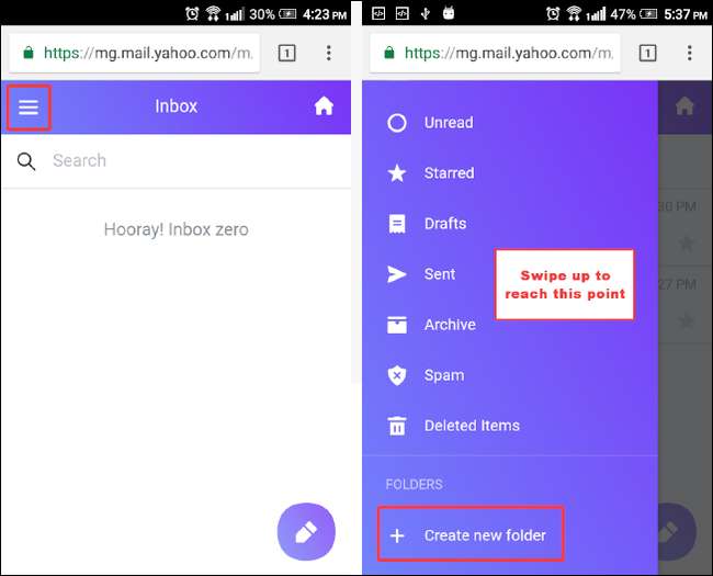 Vytvořit Yahoo! Složky pošty ve vašem mobilním prohlížeči