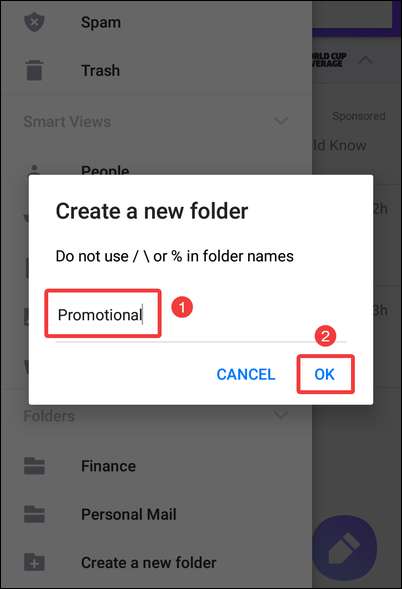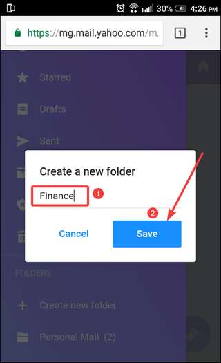 Vytvořit Yahoo! Složky pošty v mobilní aplikaci