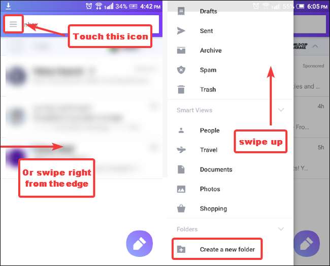 Po přihlášení klepněte na ikonu nabídky vlevo nahoře a poté přejetím prstem nahoru přejděte do dolní části nabídky. Poté klepněte na možnost „Vytvořit novou složku“.