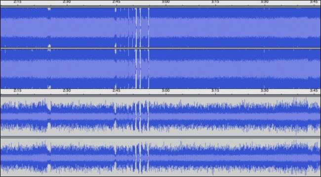 To je vlastně to, co dělá většina skladeb v rádiu, označovaných jako „ Hlasitost války ". Podívejte se na tento průběh rozhlasové úpravy písně Metallica versus verze ke stažení: