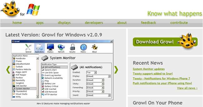 Gmail Growl je jen jedním z mnoha monitorů dostupných pro Growl a existuje spousta dalších, které možná budete chtít vyzkoušet - podívejte se například na System Monitor.