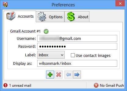Poklepejte na ikonu na hlavním panelu a zadejte přihlašovací údaje pro svůj účet Gmail. Pomocí rozevírací nabídky vyberte, jaký typ pošty chcete sledovat - můžete například dostávat upozornění pouze na důležité e-maily - a poté zadejte štítek, který by měl být použit jako identifikace ve vyskakovacích oknech.