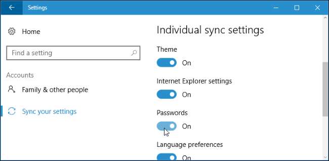 Můžete také ovládat ostatní typy dat, které Windows 10 synchronizuje tady.