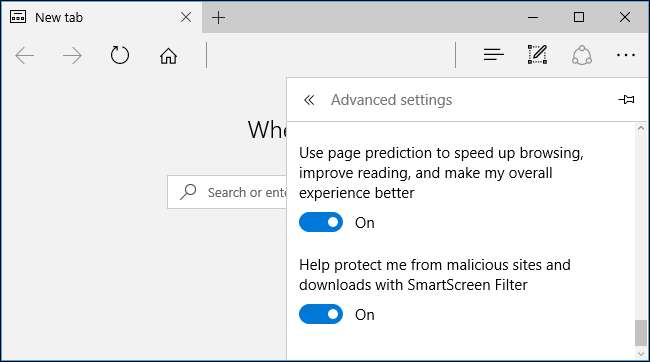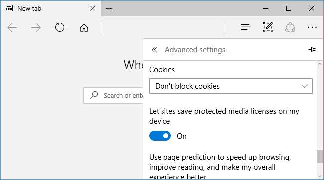 Edge má další nastavení ochrany osobních údajů. Chcete-li je najít, přejděte dolů do dolní části podokna Nastavení a klikněte na tlačítko „Zobrazit pokročilá nastavení“.
