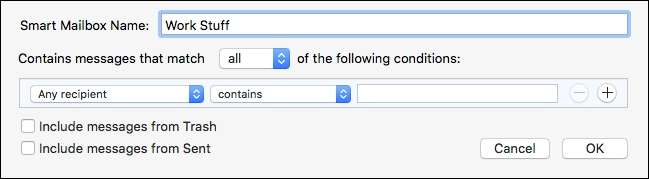 Pokračujte a pojmenujte svou inteligentní poštovní schránku vhodným názvem. V našem příkladu vytvoříme chytrou poštovní schránku, která shromáždí veškerou pracovní korespondenci na jednom místě. Nezapomeňte, že tyto e-maily nebudou přesunuty z doručené pošty, budou se jednoduše zobrazovat, jako by byly.