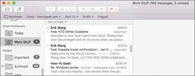 Jednou z nejzajímavějších funkcí Apple Mail jsou inteligentní poštovní schránky, které třídí vaši poštu podle předem stanovené sady pravidel. Vaše pošta se do těchto chytrých poštovních schránek ve skutečnosti nepřesune, vypadá to, že je.