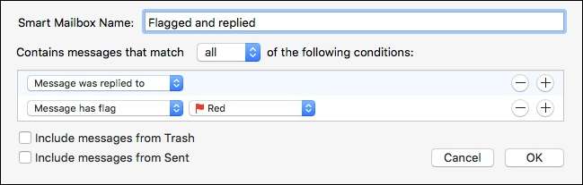 Pojďme vytvořit další jednoduchou inteligentní poštovní schránku, abyste dostali představu. V tomto příkladu vytvoříme inteligentní poštovní schránku, ve které byly zprávy zodpovězeny i označeny. To znamená, že každá zpráva se musí setkat Všechno požadavky být součástí poštovní schránky.