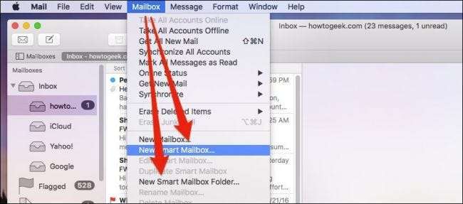 Začněte kliknutím na nabídku „Mailbox“ a poté na „New Smart Mailbox…“.