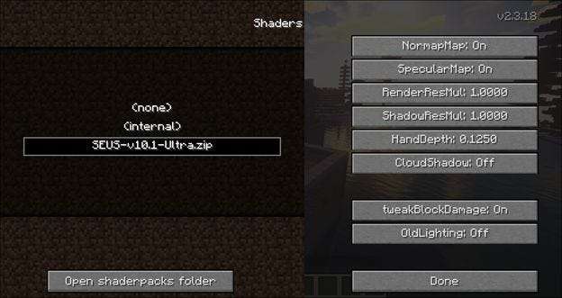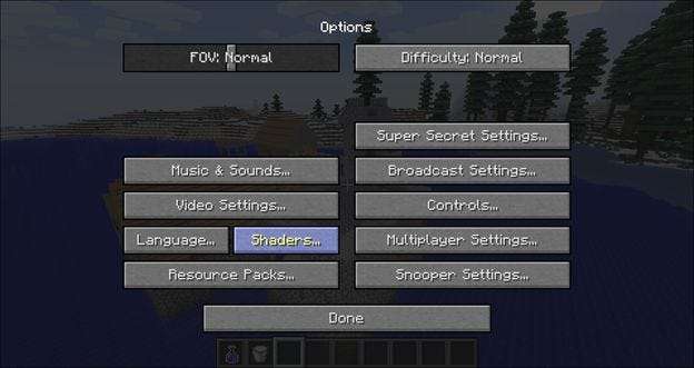 Všimnete si, že nové zobrazení se automaticky začne vykreslovat v okamžiku, kdy jej vyberete. Klikněte na Hotovo a posaďte se a prohlédněte si svůj nový zážitek z Minecraftu vylepšený o ultra shader.